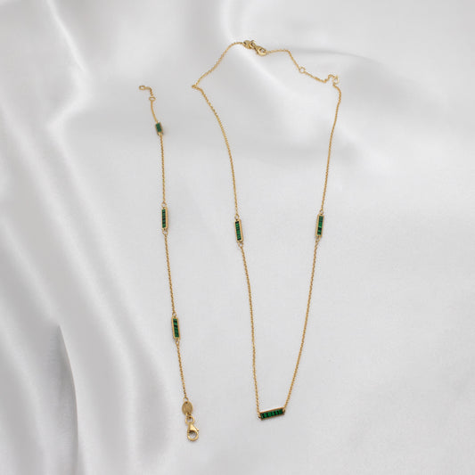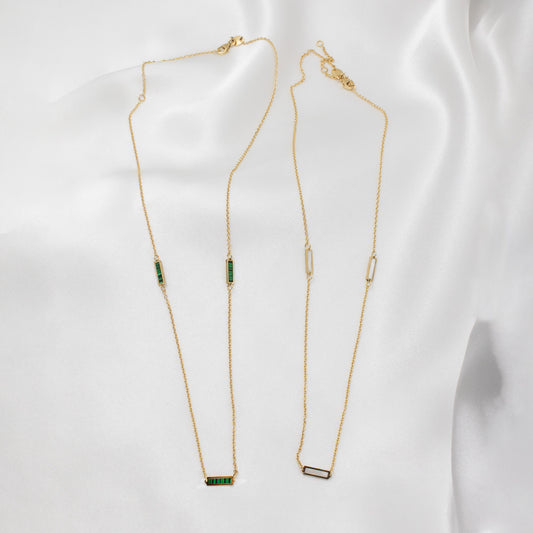 14K Solid Gold Malachite Station Necklace 16"+ 2"