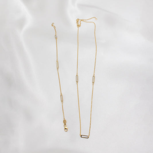 14K Solid Gold Mother of Pearl Station Necklace 16"+ 2"