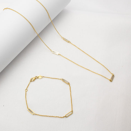 14K Solid Gold Mother of Pearl Station Bracelet 7"