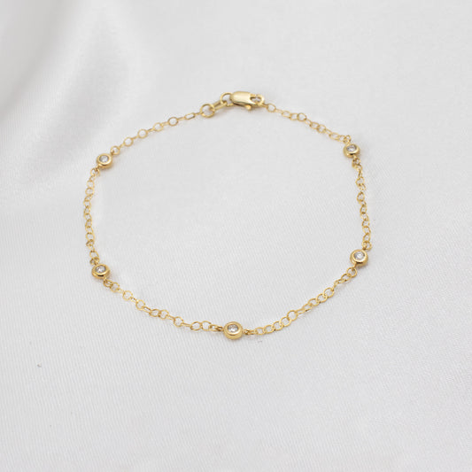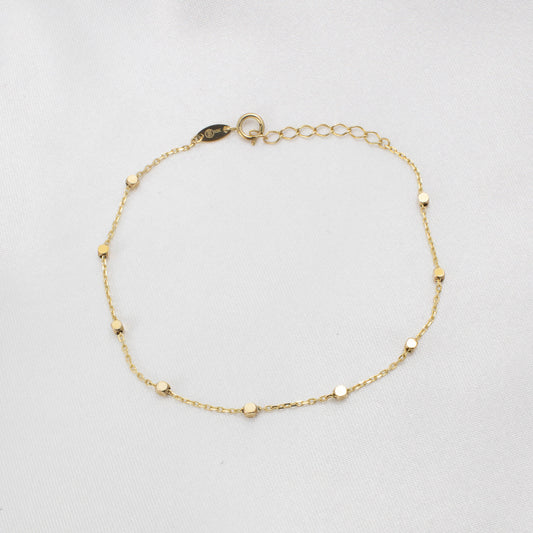 Brit - 10K Solid Gold Station Bracelet 6.5" + 1"