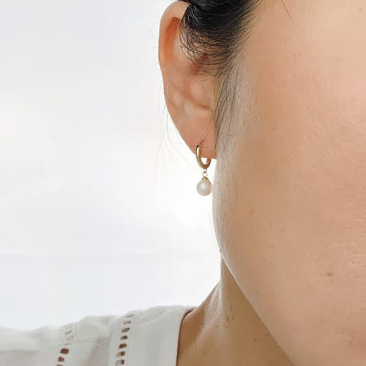 Ava - Vermeil Freshwater Pearl drop Huggie Hoop Earrings